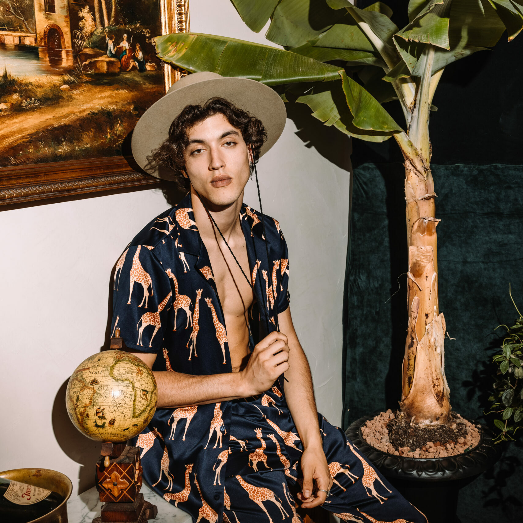 A beautifully handcrafted Crown of the Vagabond hat by the hatters Ruth and Chris on Mallorca with traditional tools in the color Prairie Dust shaped in Oasis with a classy fisherman look inspired by Santorini’s cleanness and the rough sea surrounding it consisting of a white robe surrounded by a corded leather string lead through eyelets down to use it as a chinstrap fixed with a pearl and a flat clean brim - branded with the serial number 24.